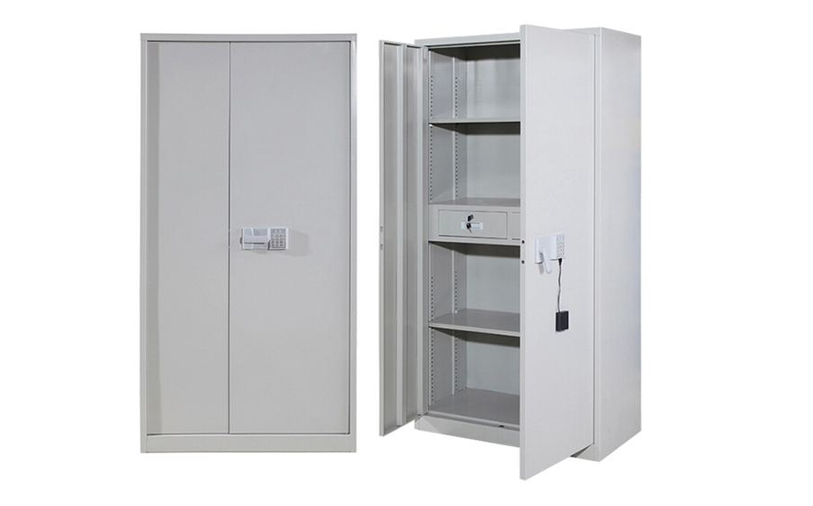 電子保密柜產品均采用寶鋼、武鋼等優質冷軋板,板厚1.0mm,配件望通鎖具,五金配件塑料為ABS新料。表面普通平光、導軌是采用成型沖壓滑輪、鎖具采用普通表面鍍鉻,內置保險柜實心鋼板工藝:即使用較厚的鋼板一次沖壓成型,柜體四周,上下,柜門均為獨立一層厚鋼板。